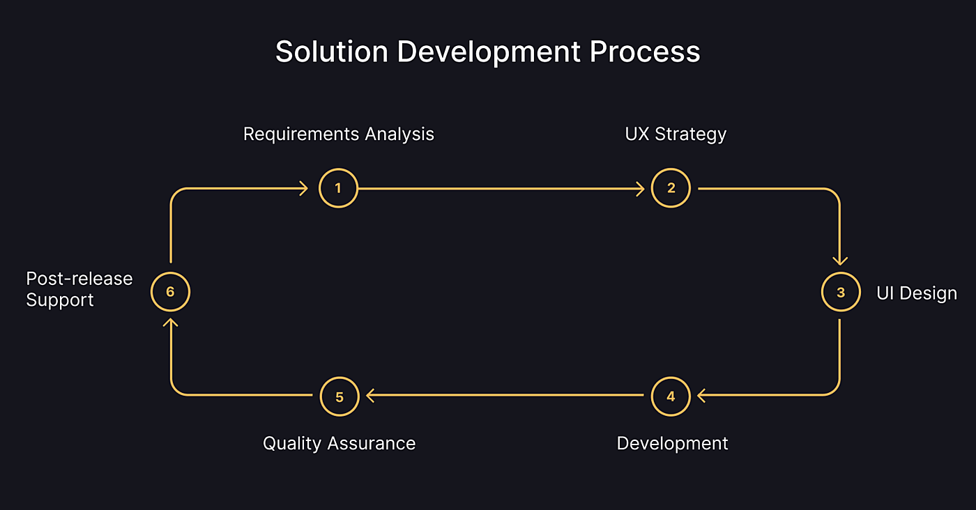 This stage presents a whole cycle of activities where the development team creates features and delivers them to the QA department for review. If there are any issues, the QA team returns the code to the dev team to make the necessary corrections and improvements. Thus, the high quality of the project and its code is ensured.